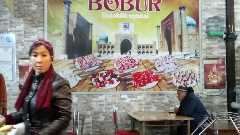 お店は最大級のモスク、ビビムハニム・モスクの裏手にある、バブルシャシリク・ハナ。オープンな雰囲気で、串の種類も多く安いのが良いのが決め手だった。結局サマルカンドで毎日食べに行くことになった。