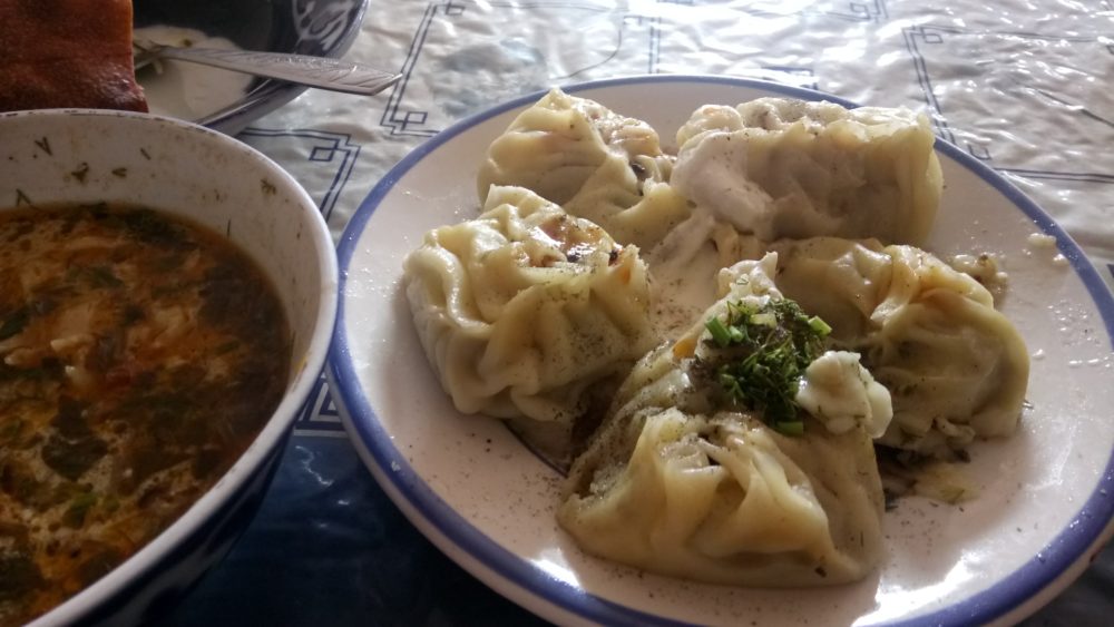 串焼き以外にも包み物が大好きな僕には、中央アジアの包み物も幸せに感じた。ウズベキスタンではマンテと言って、肉まんと水餃子の中間のような食べ物。1人前5個となど、サイズも大きいので1人では多すぎる気がするが、結構ぺろって食べられてしまう。キルギスでもマンテはあったのだろうが、ワンタンのようなトルテリーニが美味しすぎたので、マンテは1回しか食べなかった。