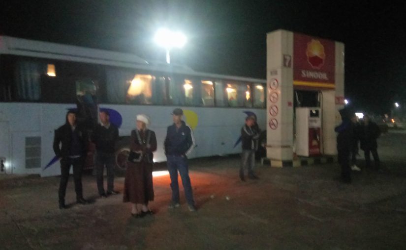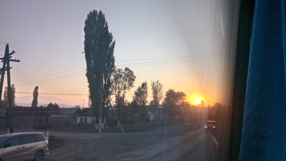 バスは17時過ぎに出発。夕日を追いかけるようにカザフスタン経由地の向かった。ビシュケクまで送ってくれたナビックが言ったたが、キルギスとカザフスタンの間にはいくつもゲートがあると言っていたので、今回どこのゲートを通ったかは正直分からなかった。