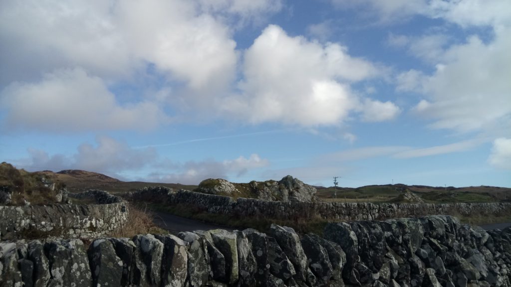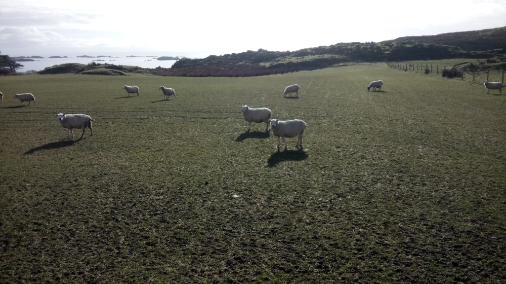 ポートエレンからアードベック蒸留所までの蒸留所までの遊歩道はイメージしていたスコットランドの景色が続いていた。遊歩道の両側は石積みの暴風壁、右側は荒々し海で、左側は羊がのんびりしている牧場。更にその奥は険しそうな山々と素晴らしいの一言でだった。数か月前までミャンマーの喧騒にいた人間からすると、同じ地球と思えなかった。
