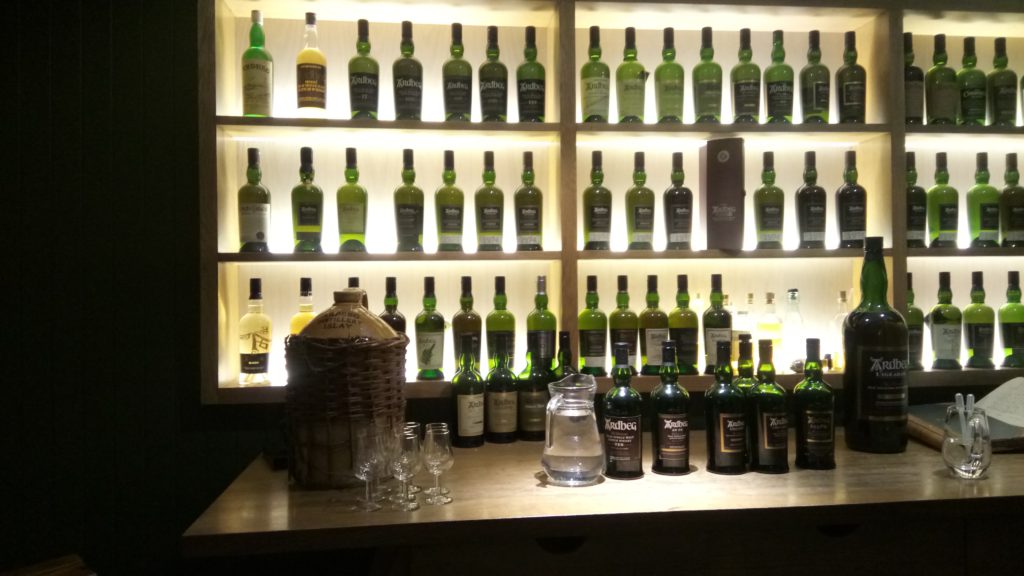 ちょっと、予想外だったのは、蒸留所見学中に樽から出して飲むのかと思ってたけど、Ardbeg Bar のような感じの場所で飲んだ。今回、面白かったのは、一緒に見学したメンバーがスコッチ猛者たちで、ガブガブ飲むこと。たしか、5杯までのみたと思うけど、僕は次があるので2杯しか飲まなかったのに、ほぼ全員が僕の倍のペースで5杯飲んでいた(^_^;)
